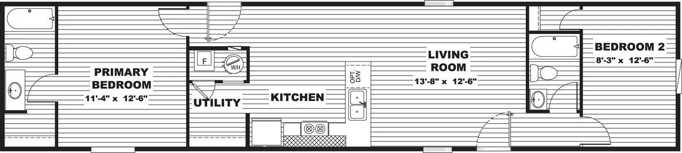 2 bed 2 bath, 840 sq ft singlewide